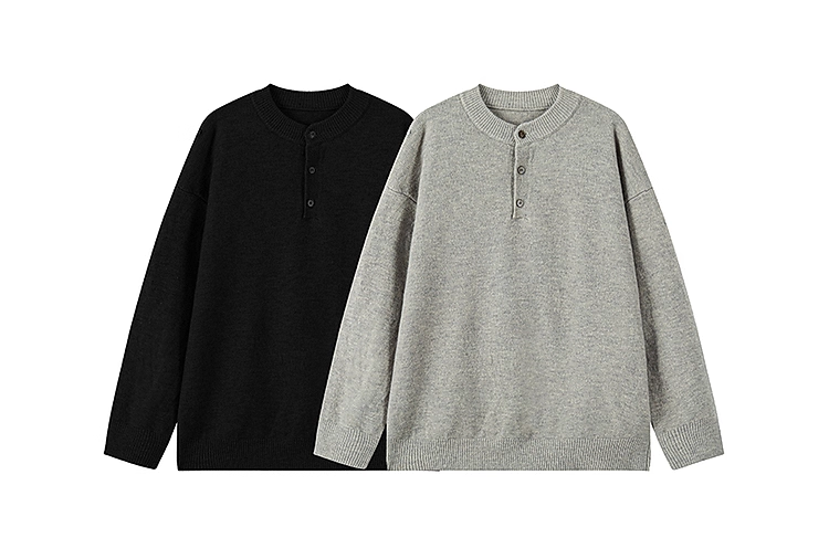 复古纯色亨利领毛衣秋季潮牌高级感休闲百搭套头针织上衣