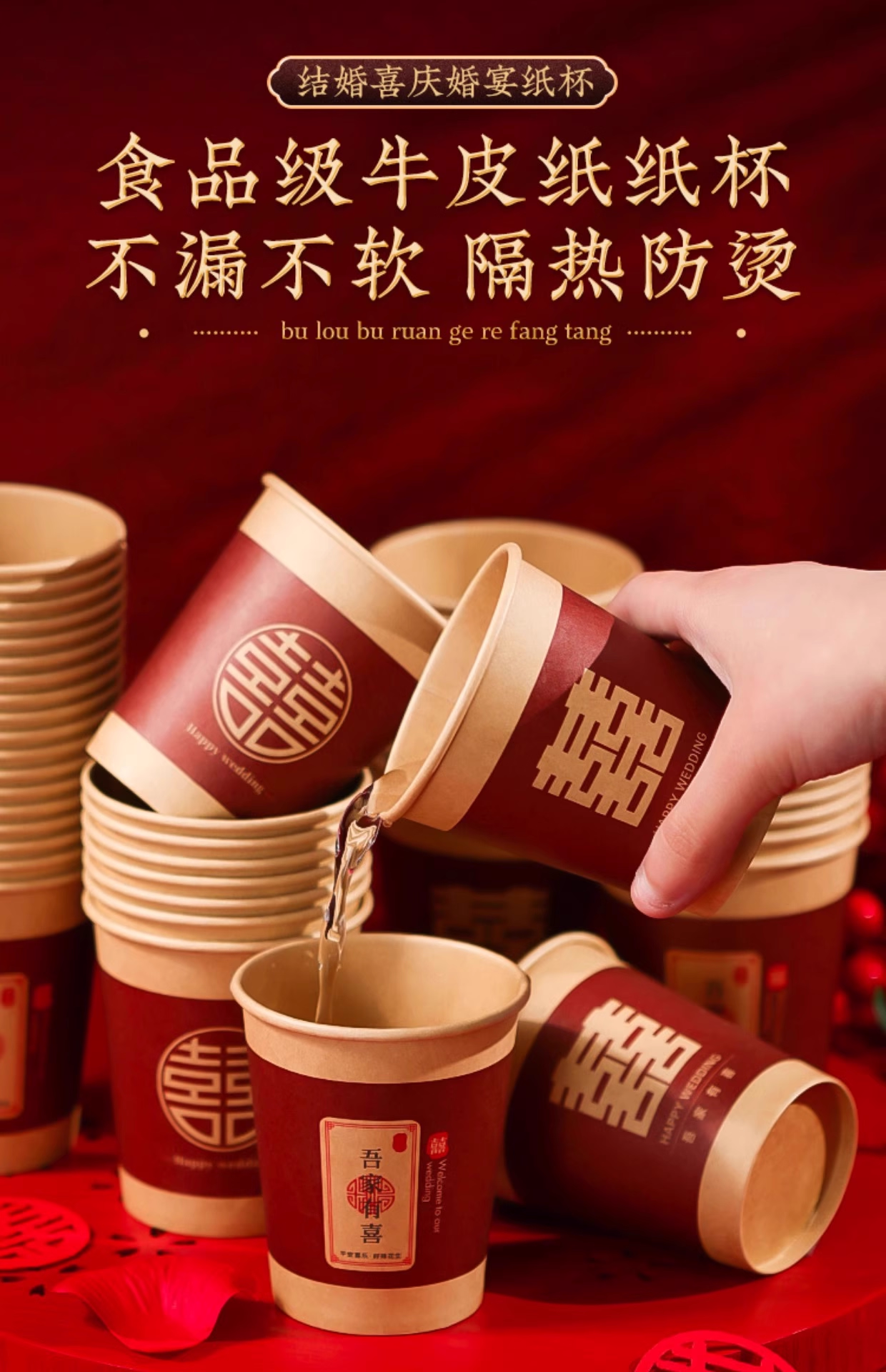 一次性纸杯结婚加厚婚庆家用喜字红色敬茶水杯喜杯子婚礼用品大全